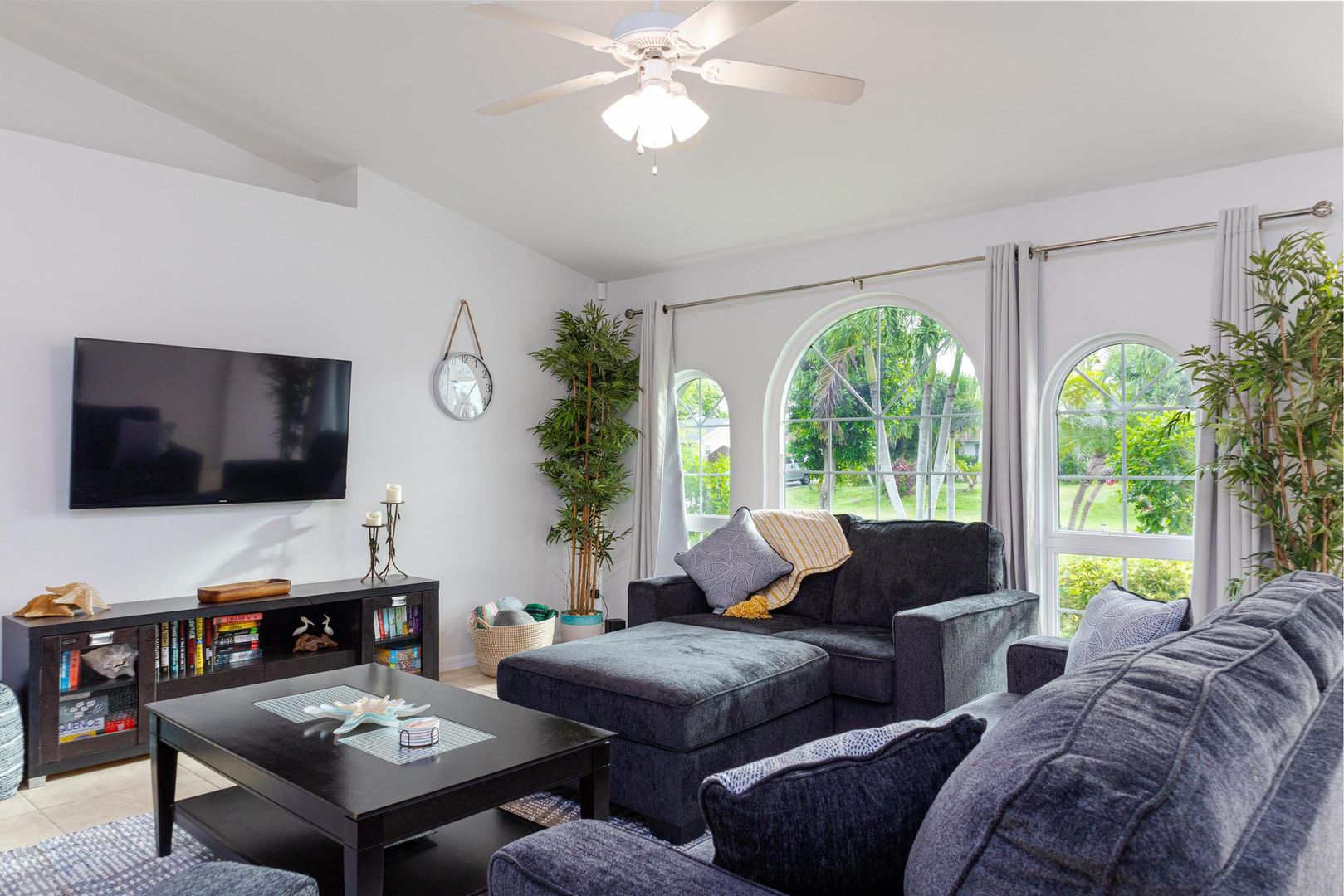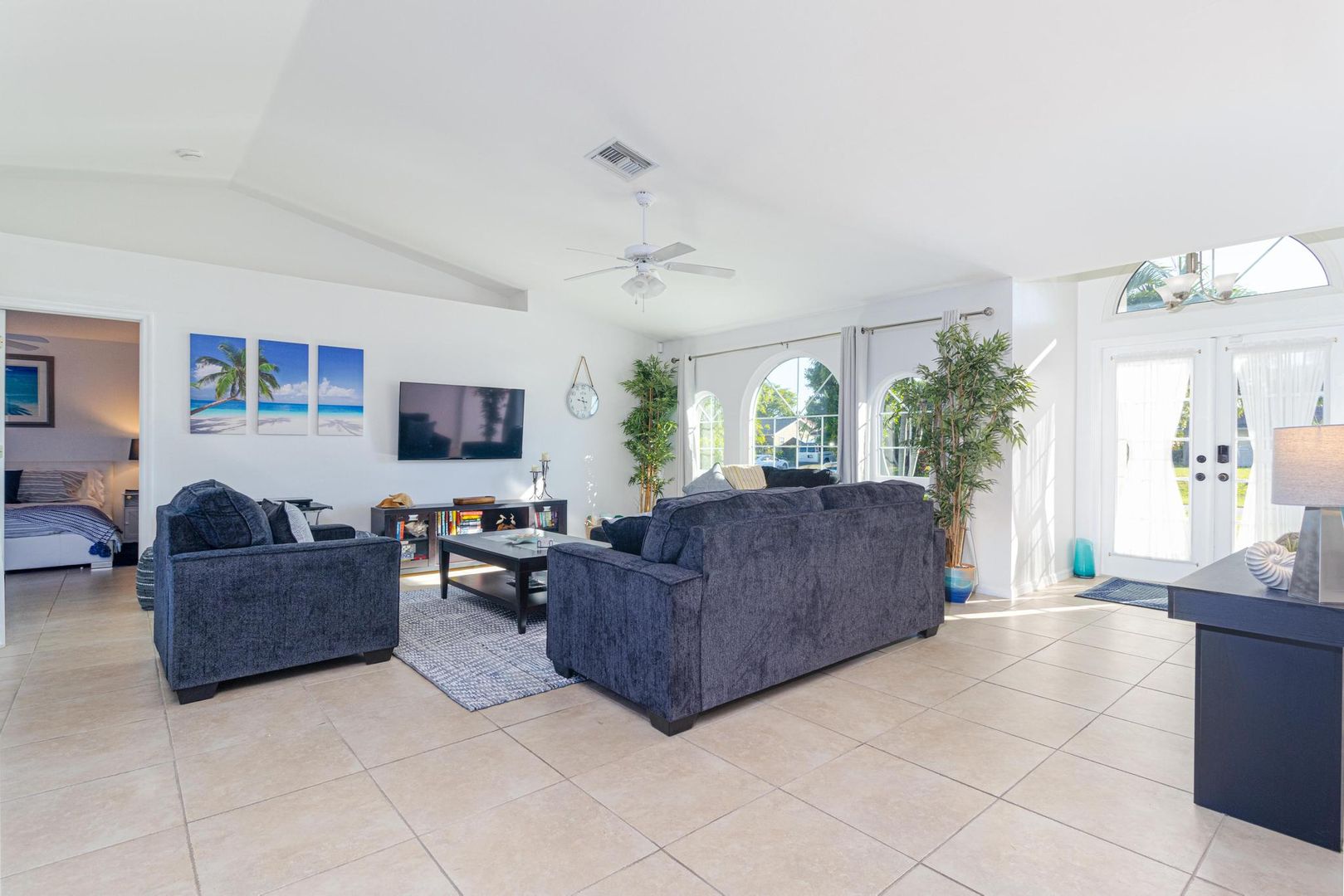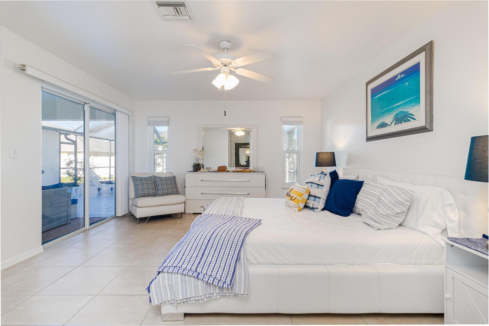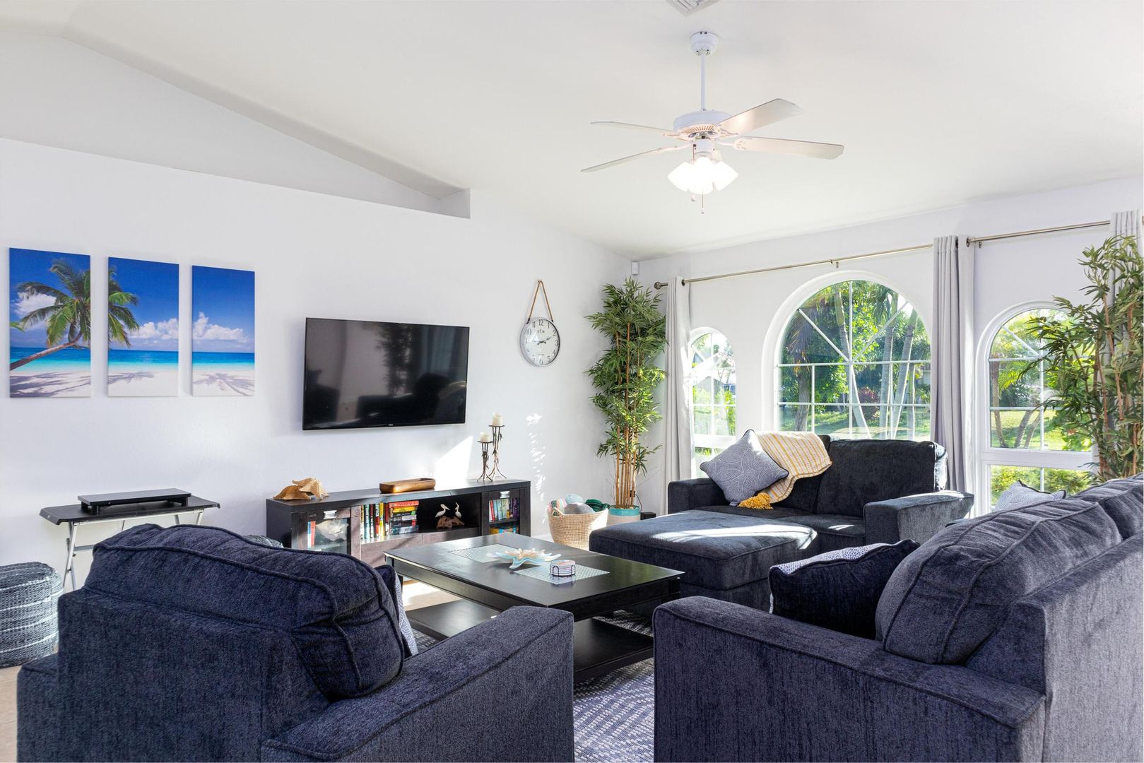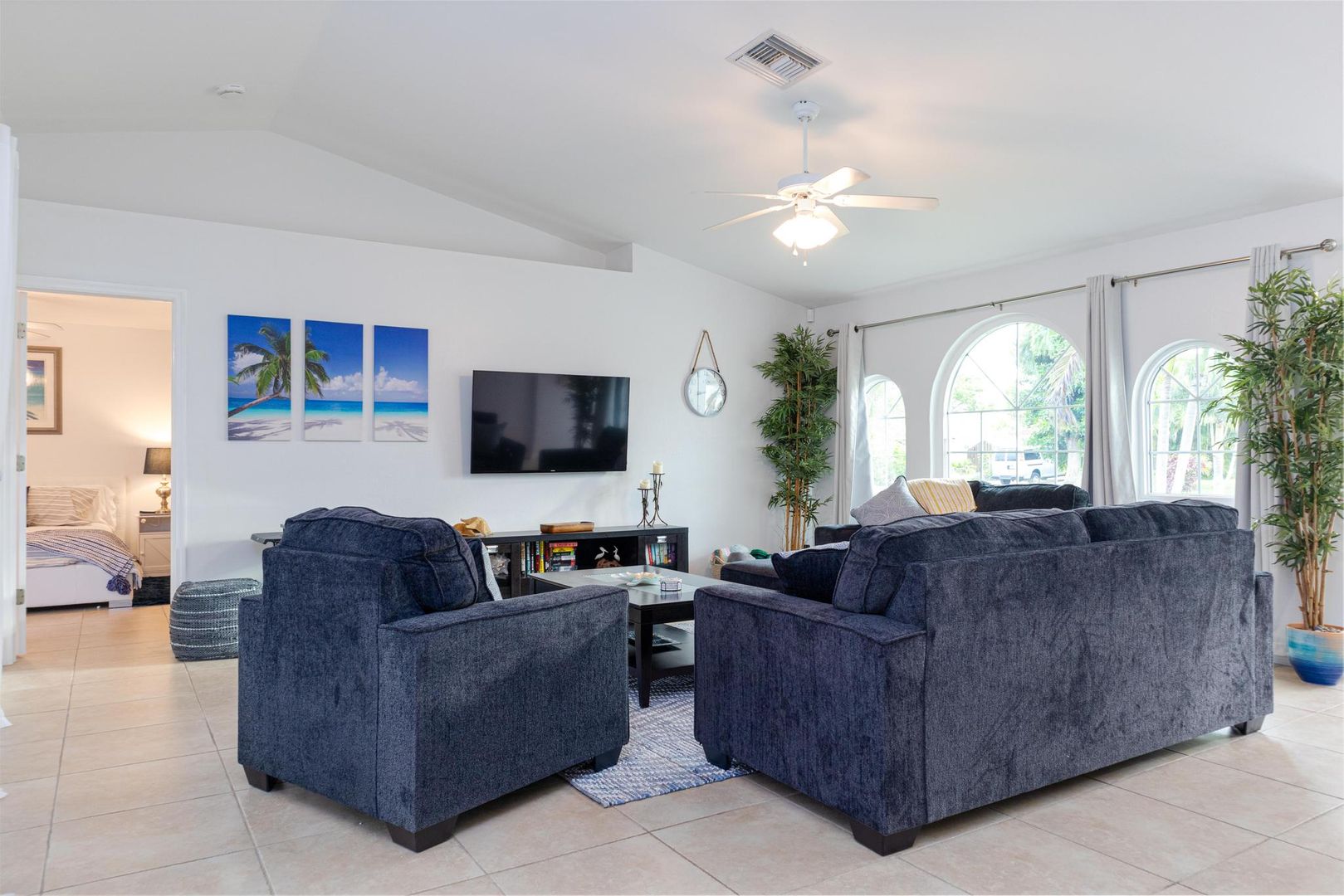 Welcome to our exquisite 3-bedroom, 2-bathroom vacation rental home in South West Cape Coral, FL. This beautifully decorated house features a pool and is equipped with everything you need for a perfect vacation, including games, books, and pool toys. The open-concept living space is bathed in natural light, and the fully-equipped kitchen is ideal for preparing meals. The backyard oasis with a screened lanai and sparkling pool is perfect for relaxation. Located in a peaceful neighborhood, this vacation rental offers a delightful and comfortable escape for your getaway.