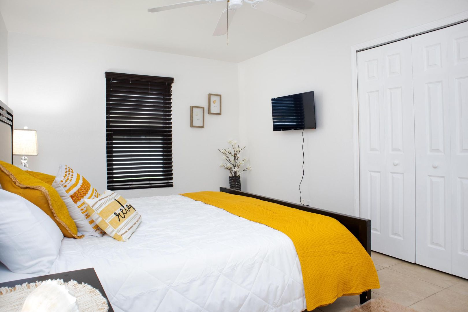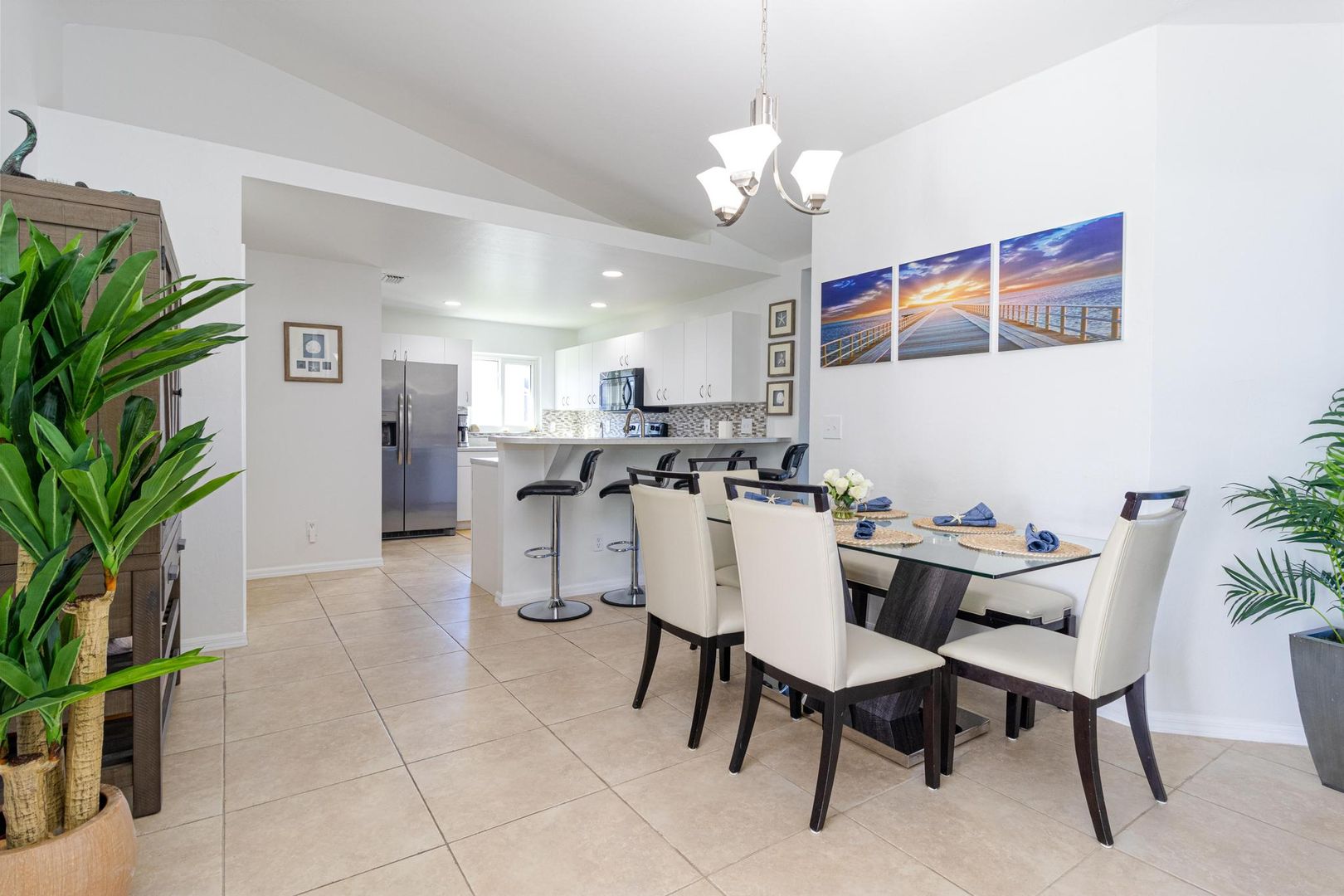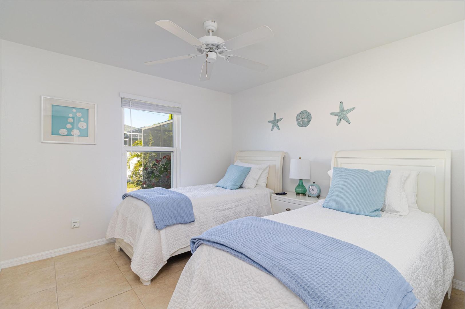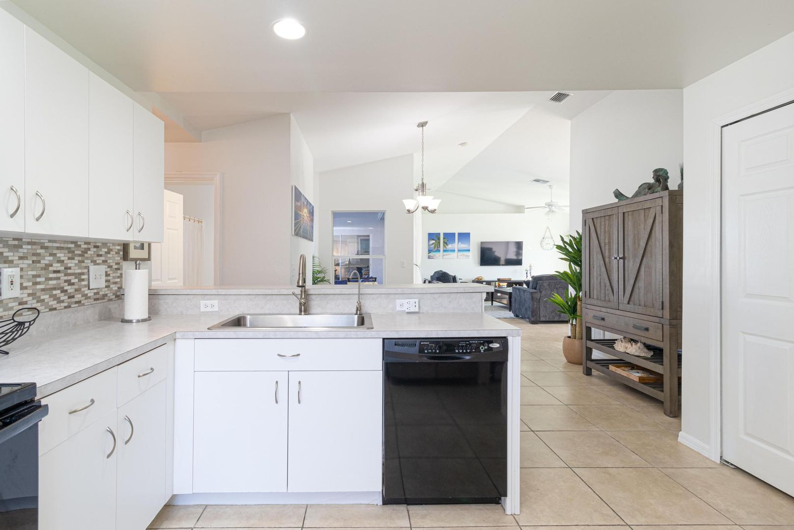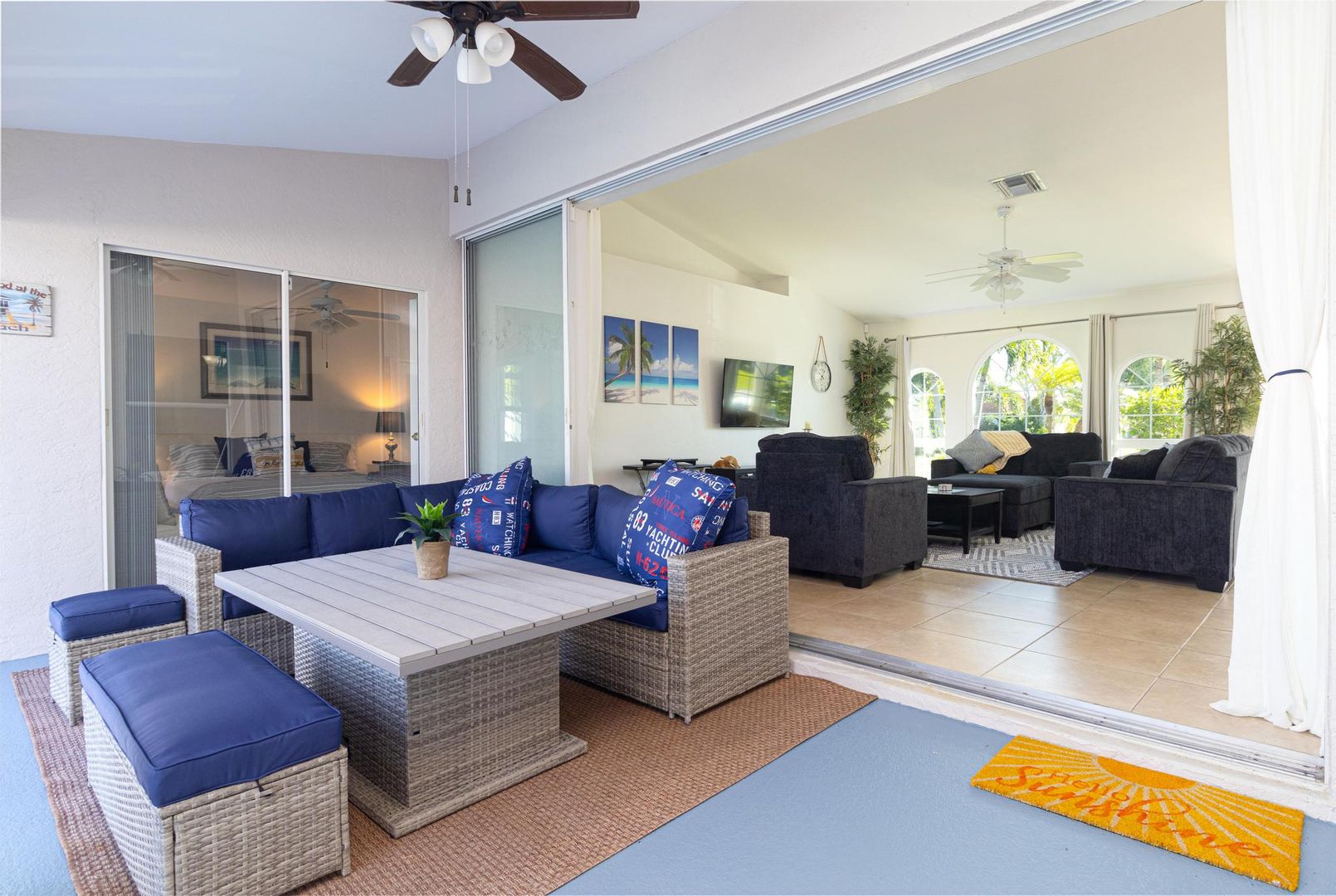 Welcome to our exquisite 3-bedroom, 2-bathroom vacation rental home in South West Cape Coral, FL. This beautifully decorated house features a pool and is equipped with everything you need for a perfect vacation, including games, books, and pool toys. The open-concept living space is bathed in natural light, and the fully-equipped kitchen is ideal for preparing meals. The backyard oasis with a screened lanai and sparkling pool is perfect for relaxation. Located in a peaceful neighborhood, this vacation rental offers a delightful and comfortable escape for your getaway.