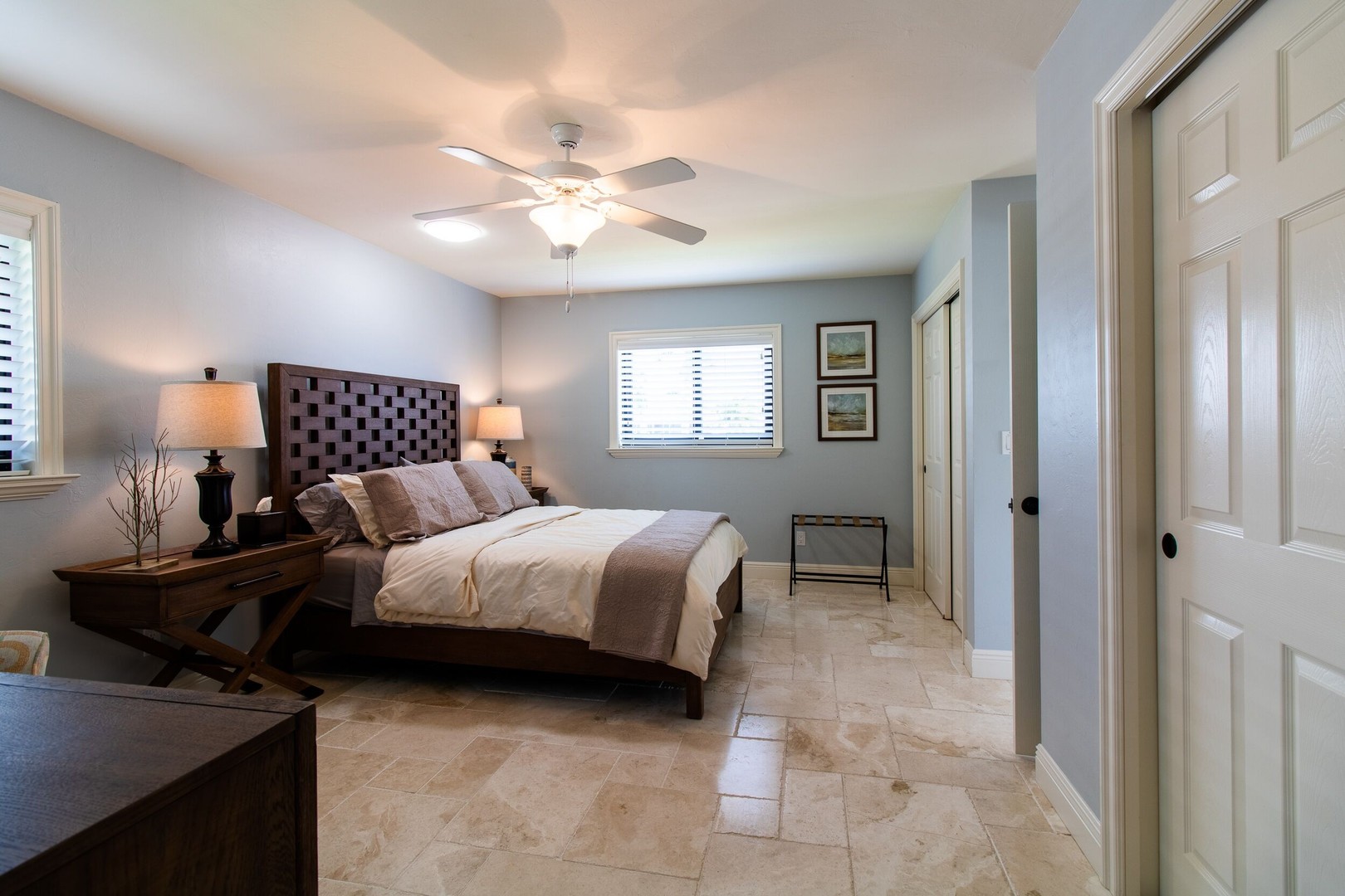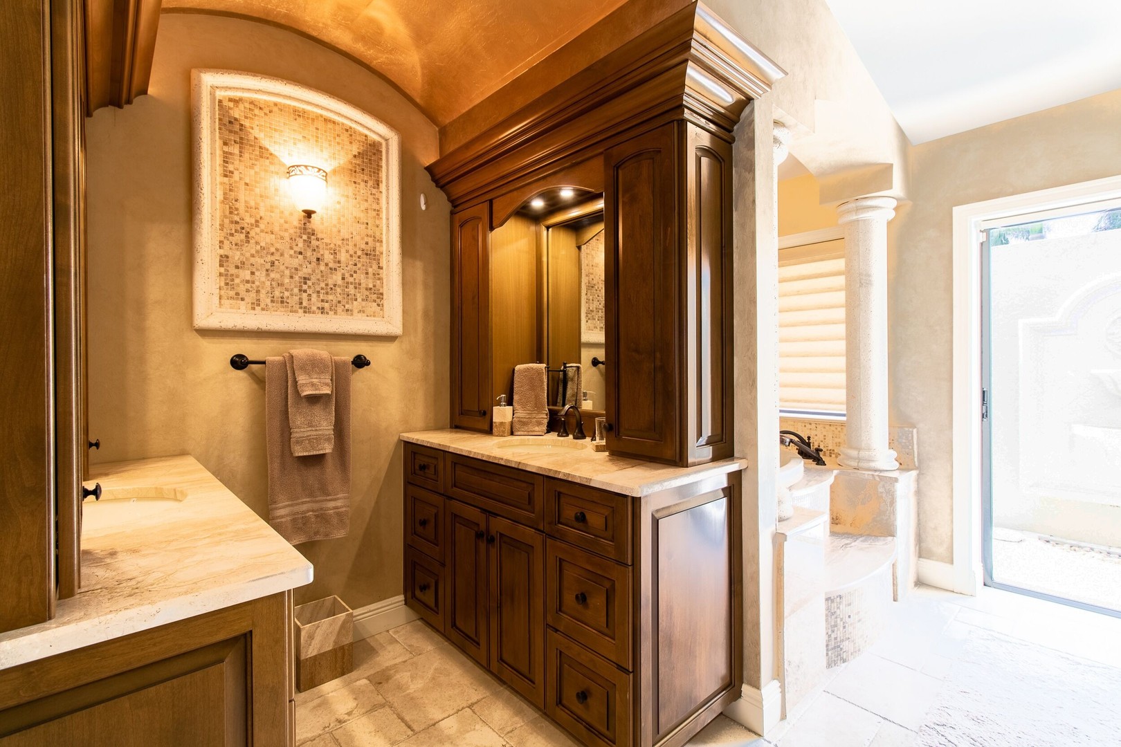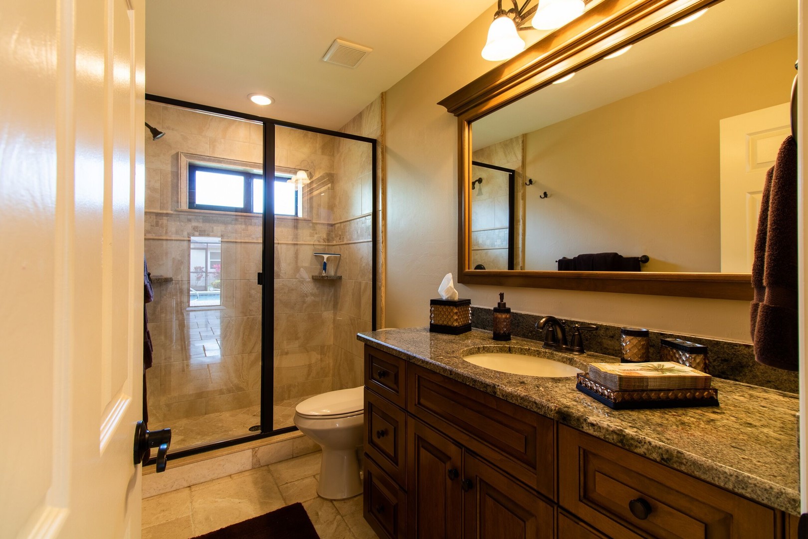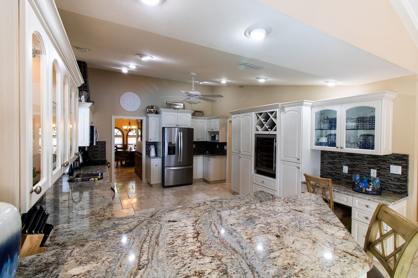 This Gulf-access 4 bedroom, 3.5 bath pool home is located in the desirable Rose Garden area of Cape Coral and is situated on a beautifully landscaped lot overlooking a wide canal. For the serious boater, you are only an 8 minute ride to the Caloosahatchee River and there is fish cleaning station on the dock! Witness beautiful sun rises each morning and great fish watching. Spacious living area with a custom designed kitchen sure to please any gourmet cook. Home has recently been completely updated and features chiseled marble floors throughout, granite tops, Hunter Douglas window treatments, and updated bathrooms. The huge family room features a stone fireplace, pocket sliders opening up to the beautiful pool and spa area with a custom outdoor bar and grill. It just doesn’t get any better than this! Contact us today to book your stay in paradise!