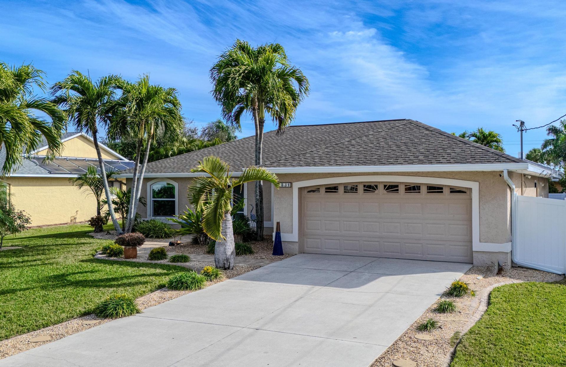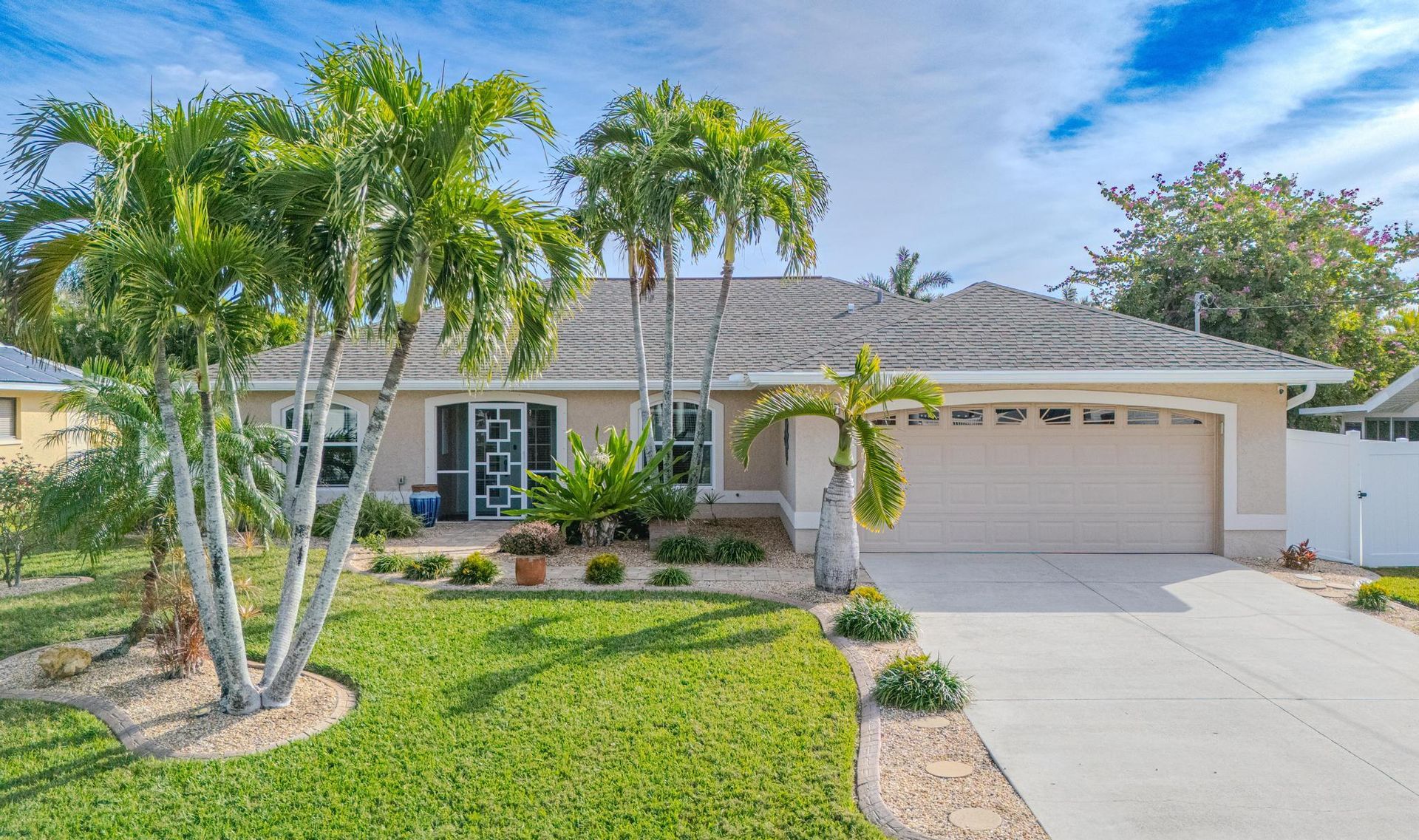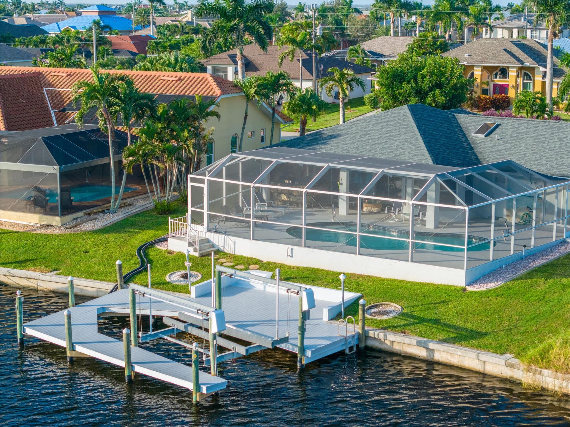 LIVE THE WATERFRONT LIFESTYLE in this Gulf-access home, located on the 200’ Maxine Canal in SW Cape Coral. The paver driveway, fruit-bearing mango tree and palm trees greet you on your arrival. This home has water views from nearly every room. The outdoor living space in this home is SPECTACULAR! The lanai is protected with Kevlar Screening and the roof was replaced in 2020. The HVAC system is new as of 2022. The pool was resurfaced in 2018. The outdoor kitchen features a built-in grill and beverage-fridge. The composite dock and captain’s walk is brand new and comes with a 10,000 lb. boat lift. Close to Veterans Memorial Pkwy and Burnt Store Road for easy access to great dining and shopping!